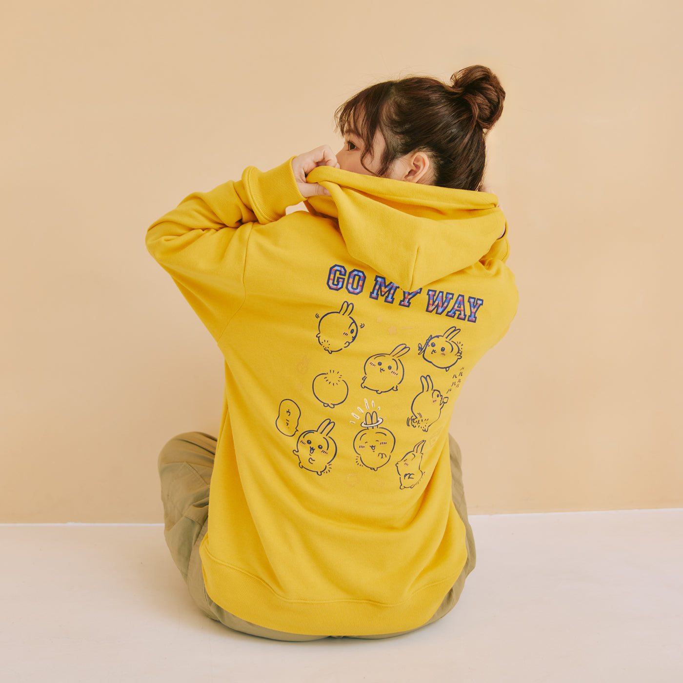 バックは様々なポーズのうさぎがいっぱいのにぎやかなプリント✨